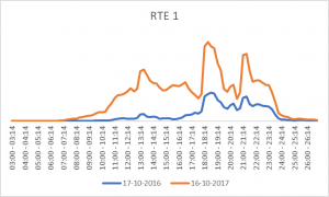 Over on RTE One it was a similar story across the day, with news bulletins providing the main viewership spikes during the day.